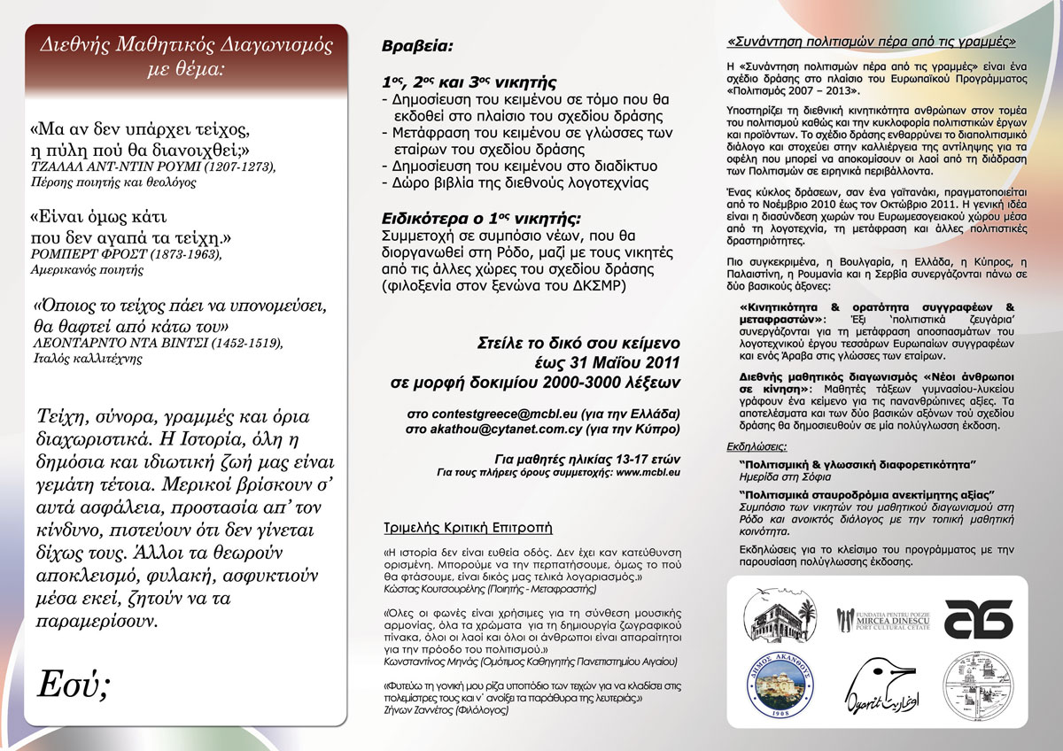 [Ακολουθούν συνημμένα αρχεία] Ο Διεθνής Διαγωνισμός σκοπό έχει τη σύζευξη των Νέων διαφορετικής καταγωγής, θρησκείας και γλώσσας μέσα από τη δοκιμιακή γραφή