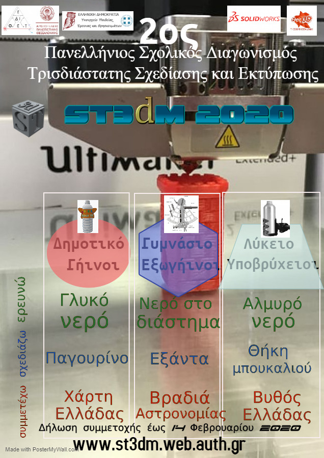 ST3dM. 2ος Πανελλήνιος Μαθητικός Διαγωνισμός Τρισδιάστατης Σχεδίασης και Εκτύπωσης από το ΕΔΙΦΕΤ – Εργαστήριο Διδακτικής της Φυσικής και Εκπαιδευτικής Τεχνολογίας για μαθητές/τριες Π.Ε. και Δ.Ε. – σχ. έτος 2019-2020 - Παράταση Διαγωνισμού