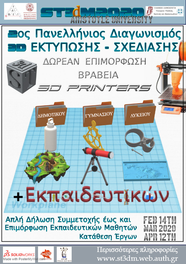 ST3dM. 2ος Πανελλήνιος Μαθητικός Διαγωνισμός Τρισδιάστατης Σχεδίασης και Εκτύπωσης από το ΕΔΙΦΕΤ – Εργαστήριο Διδακτικής της Φυσικής και Εκπαιδευτικής Τεχνολογίας για μαθητές/τριες Π.Ε. και Δ.Ε. – σχ. έτος 2019-2020 - Παράταση Διαγωνισμού
